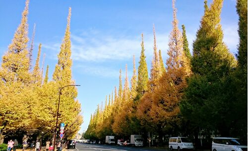 この日は朝一番に外苑前に向かい、まさに見頃を迎えたイチョウ並木を眺めました。 その後、明治神宮まで歩いて、明治神宮文化館の宝物展示室に向かいました。しかし、開館時間になっても開かない。なんと、この日は展示替えにつき閉館日。しかも、前期を逃し…