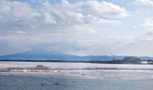オホーツク流氷館が思ってた以上にこじんまりとしていて、飛行機の時間まで余裕があったので濤沸湖(とふつこ)に白鳥を見に行きました。車を停めると山の方から甲高い鳴き声。知床半島が近いので、おそらくエゾシカでしょう。 白鳥展望公園内、野鳥観察舎か…